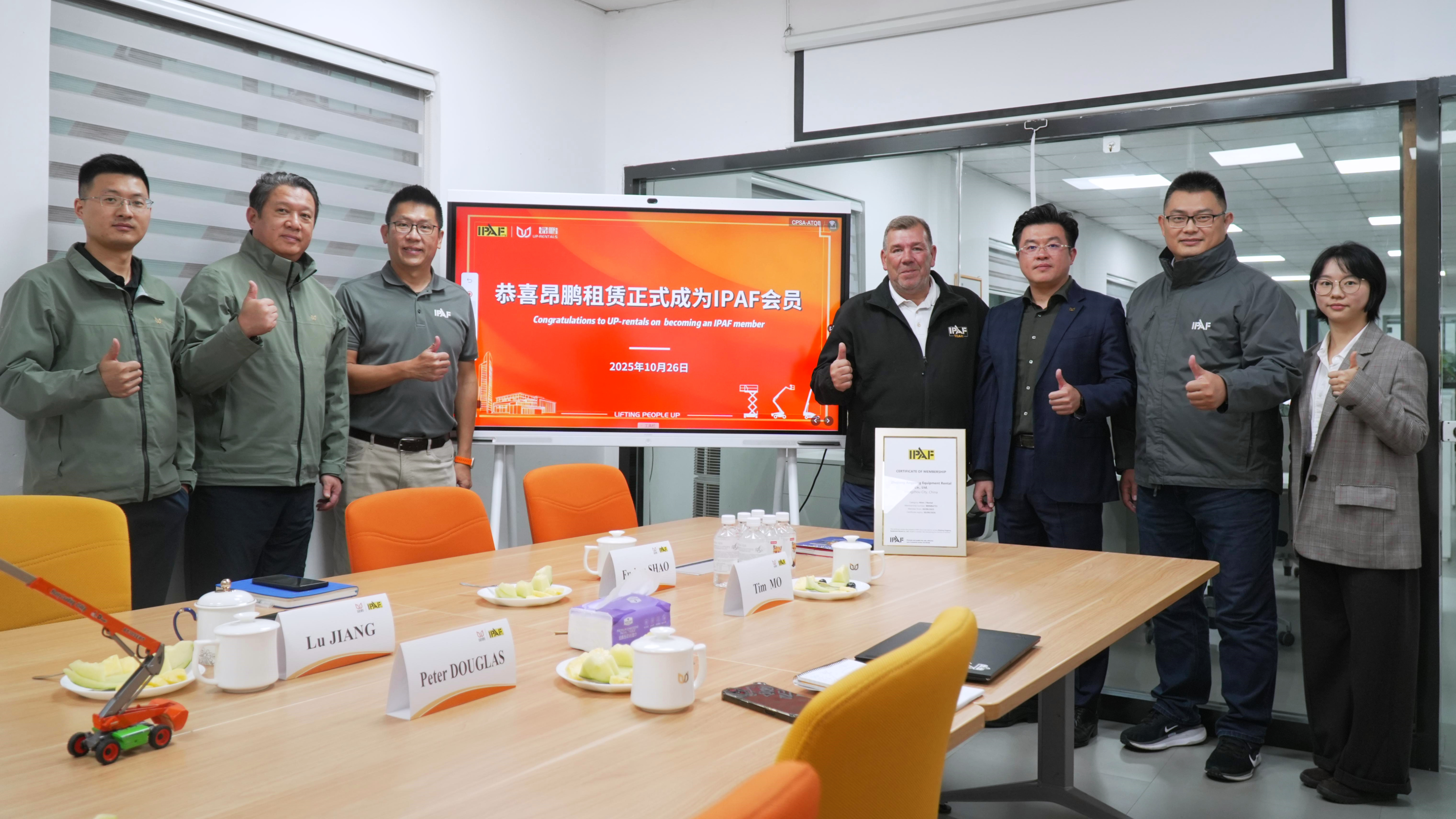 2025年10月26日,國際高空作業(yè)平臺聯(lián)盟(簡稱:IPAF)首席執(zhí)行官-Peter DOUGLAS、東南亞區(qū)域總經(jīng)理-屈永昇、中國區(qū)域總經(jīng)理-莫宇蒞臨杭州,Peter DOUGLAS親自為「浙江昂鵬設(shè)備租賃有限公司」頒發(fā)會員證書。這一歷史性時刻標(biāo)志著,昂鵬成為IPAF在中國登高車租賃企業(yè)中的第5家會員,正式躋身全球高空作業(yè)安全與規(guī)范發(fā)展的核心圈層,開啟行業(yè)發(fā)展新征程。